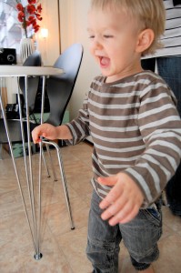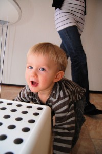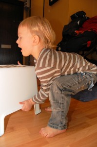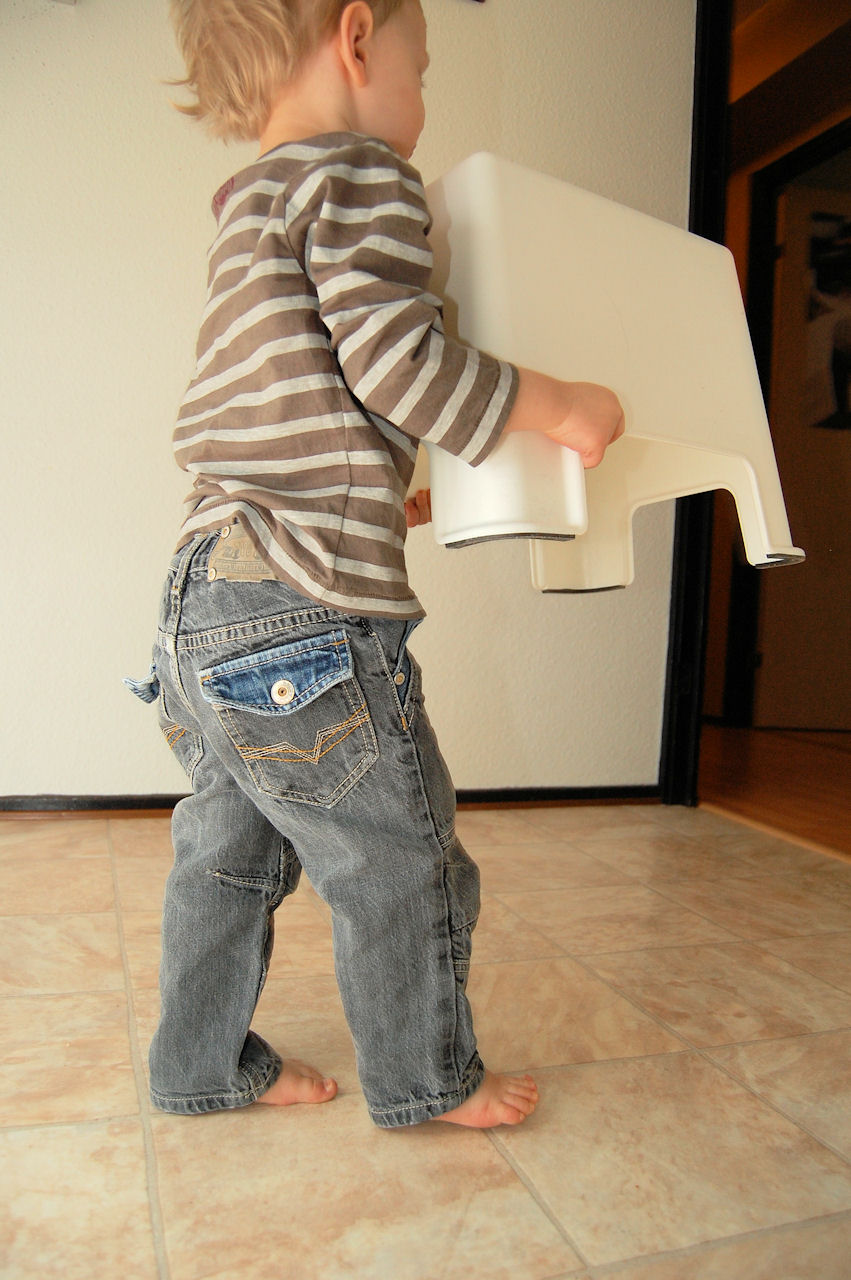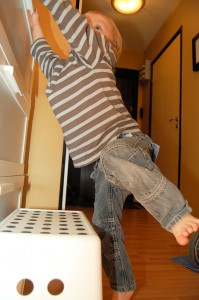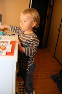 Tadaaa!! Han skulle upp där alla roliga leksaker låg.. Ovanligt..