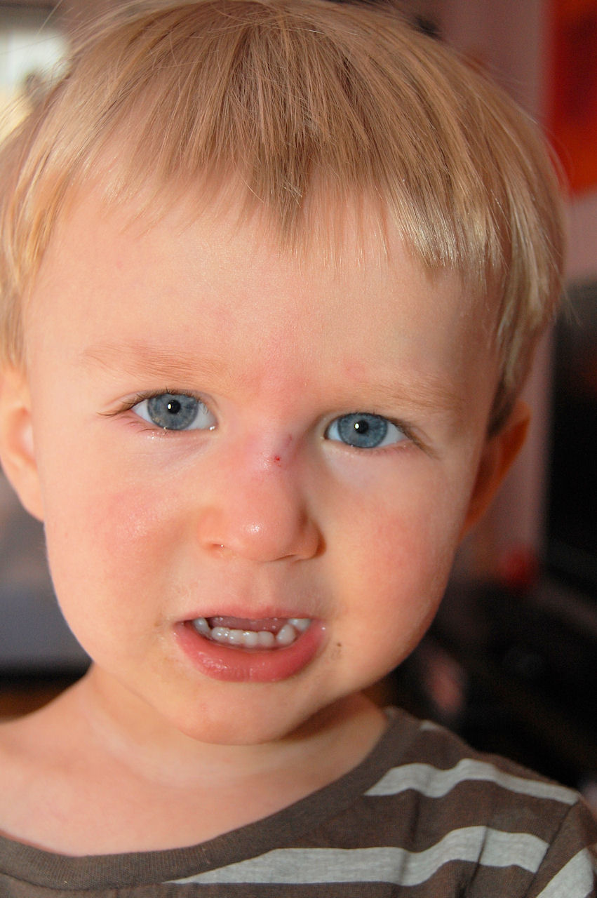 Men sen slog han sig när han va på rummet med pappa.. Inte pappas fel då såklart utan Felix slog i näsan när han böjde sig hastigt ner mot golvet vid sängen för att ta upp nått han tappat.. Sängen stod helt enkelt ivägen..