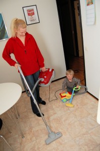 Mot kvällen påbörjade jag och Felix städning av köket då gossen ätit sockerkaka överallt i hela köket.. 🙂