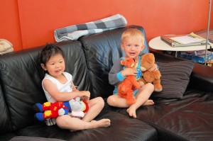 Felix gick o hämtade sina gosisar så de kunde leka lite med dem. Sötis.