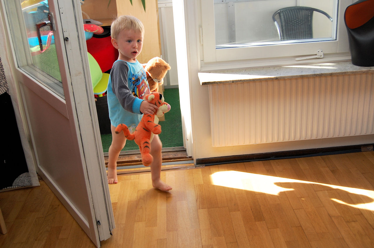 Söndag morgon började lite annorlunda. Felix och pappa snurrade runder i sängen och busade.