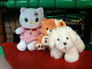 Sen var det dags att åka till busfabriken när sonen hade sovit en runda. Dessa gosisar drog jag upp för vars en tia. 🙂 Från vänster Mammas hello kitty, Felix nalle aka Benjamin, och morbror kims vovve Felix 😀