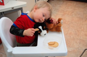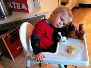 Till slut fick jag mata i honom kex, för han ville ha men orkade inte lyfta armen..