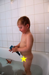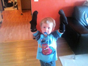 På kvällen ville Felix ha mina sockar (oanvända) på händerna. Gullunge.