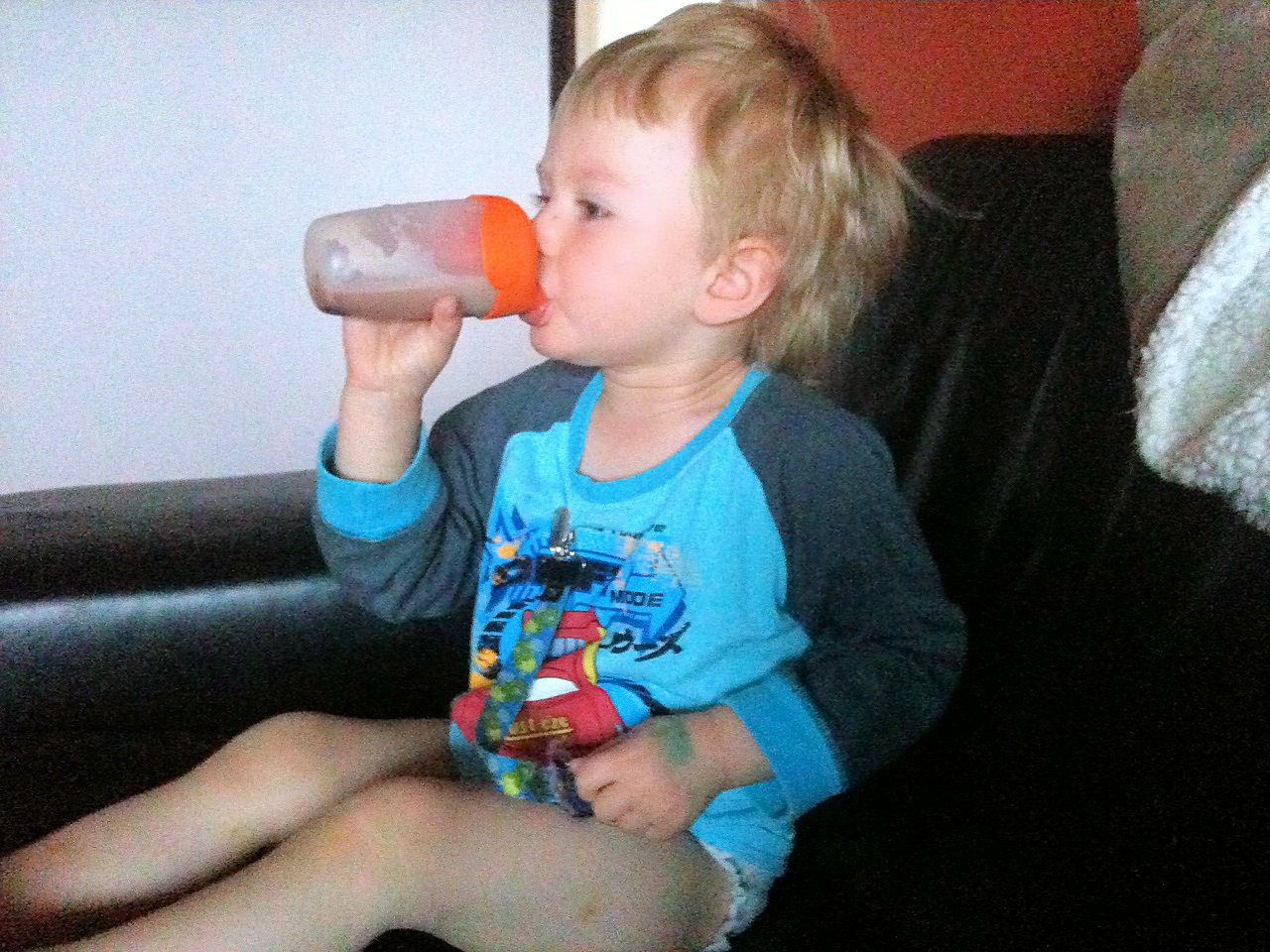 Sen blev det tisdag och pappa åkte bort ett par dagar.. Vi tog en kvällspromenad med Alexandra, som Felix ser som sin nya kompis, och sen gick vi hem och myste. Felix sov gott tisdag natt iaf och fick i sig sin oboy som vanligt i soffan på kvällen.. 😛