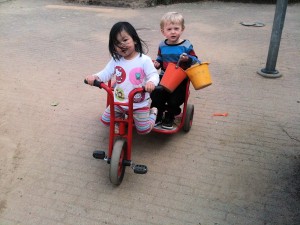 Idag när jag hämtade busungen på dagis så hittade jag pussungarna ute på gården, Elin cyklar och Felix åker.. Underbara barn!
