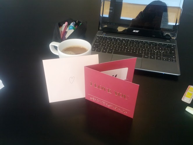 Det var ju även alla hjärtans dag i fredags. Jag satt och pluggade på ship/mind park och så kom min fina man med kaffe och ett kort. Myyyys.. 300:- på hm.. Och så klart kan man inte handla med det på nätet då hm:s sida suger just nu.