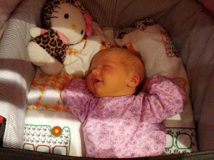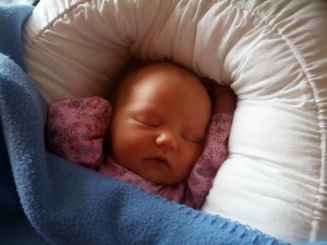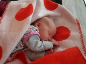 Freya sover mest i sitt underbara babynest som jag sytt helt själv.. Underbart!