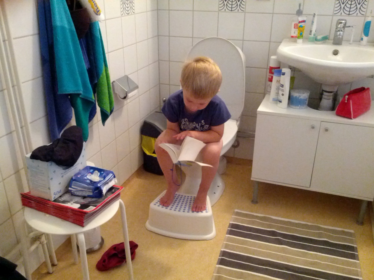 När han nu är storebror så sköter man magen på toan o inte pottan, o sitter man på toan får man läsa dassboken..