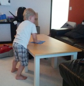 Han tycker det är lika viktigt som pappa att ha det vääääldigt rent runt Freya så nu städar han en massa..