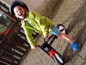 Han blev ju storebror så då får man en storebrorspresent.. En springcykel..!