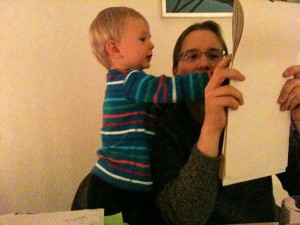 Efter mormorbesöket så hämtade vi pappa på jobb och sen läste de i skämtkalendern.. Felix skulle överrösta pappa så de var högljuda kan jag säga.. Hihi..