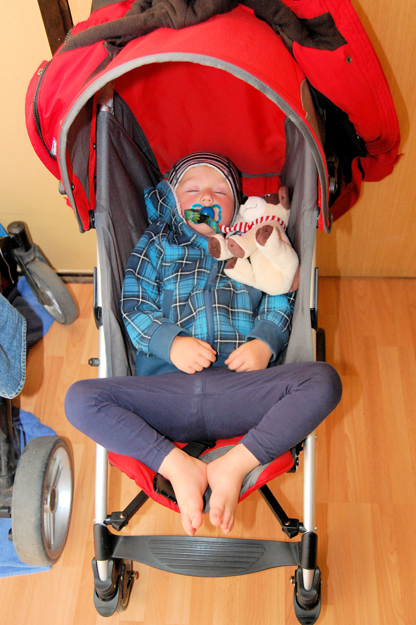 Han somnade i bilen hem så jag lade honom i vagnen o rullade upp i lägenheten.. 🙂