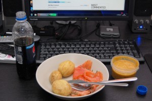 Sen igår var vi iväg och hälsade på min kusin som fyllde 35. Sambon kände inte för att följa med så han stannade hemma och åt lite midsommarrester.. Ser gott ut. 😛