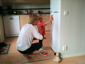 Sen skulle Felix och mormor skriva Felix och mamma på kylen.. 😛