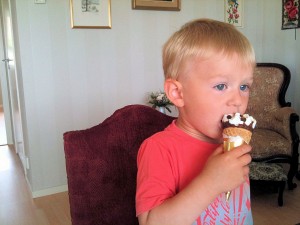 Och Felix fick en glasstrut precis innan maten och så undrade de varför han inte var hungrig till lunch. :-S