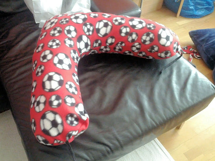 Jag har sytt mig en amningskudde/myskudde för nyfödd bebis som väntas. 🙂 Ska köpa mer tyg och sy andra överdrag som jag kan byta mellan då det säkert kommer komma kräk på den när ungen ligger där och myser.