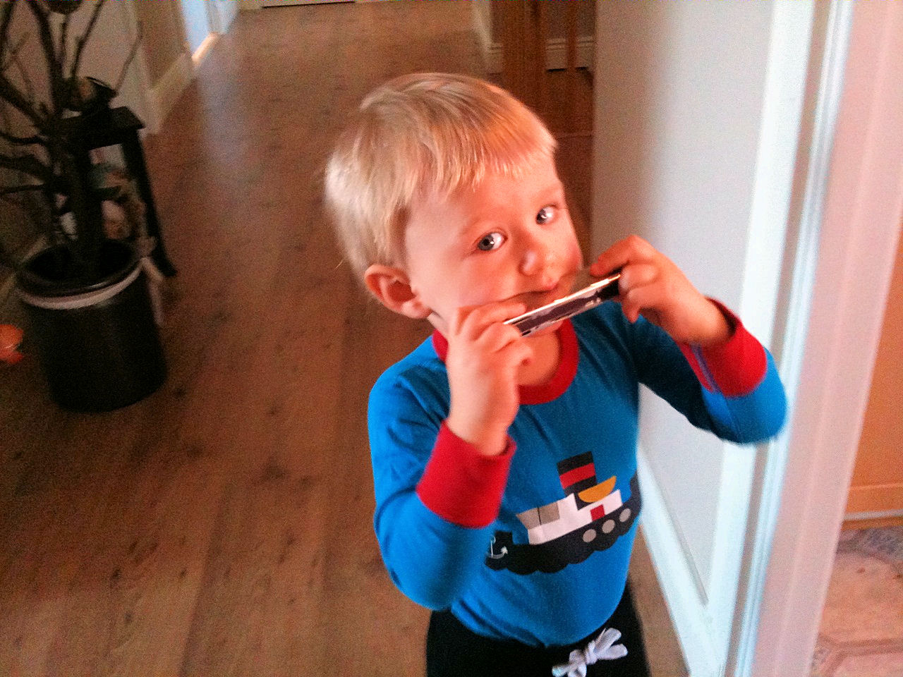 Idag har vi varit hos morfar och lekt med Elvira.. Det blev lite spel på munnspelet med..