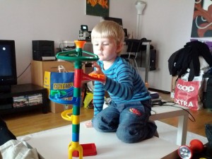 Felix tycker inte det är så roligt att vara hemma när alla andra barn är på dagis men han gör de bästa av det och leker med leksaker som han inte lekt med på ett tag.
