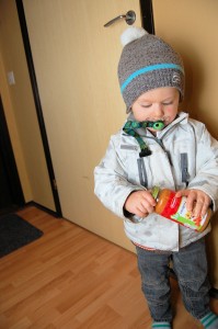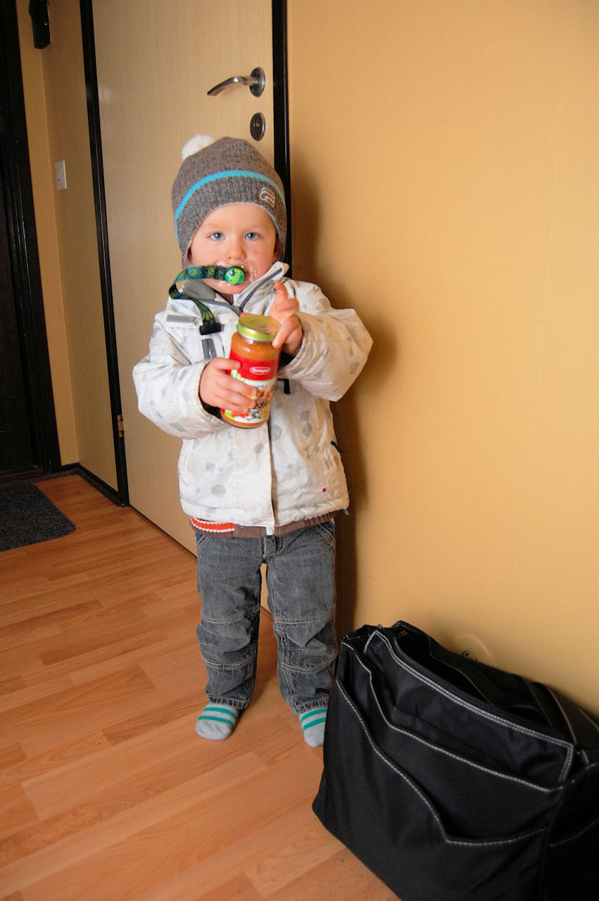 På eftermiddagen skulle vi åka till farmor o farfar så Felix tog med sig en burk lasange.. Mums..