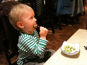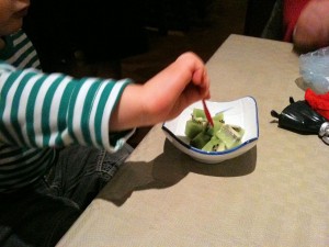 Väl på restaurang Koriana så beställde Felix in lite kiwi.. 🙂 Han frågade tjejen själv och hon gick och hämtade det till honom..