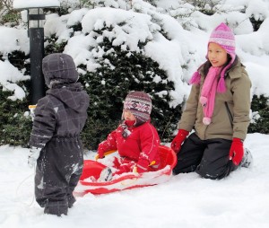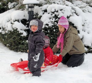 Elin och My kom ut efter ett tag och lekte med mina gossar.. Det ser dock ut som att Felix tyckte det var jobbigt att hålla dem nöjda.. Hihi