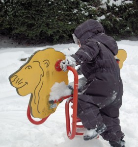 Felix ville inte sluta busa när vi skulle in för lite lunch..