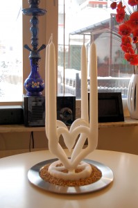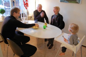 Men vi gick in, åt lunch och sen var det dags för mormor att komma.. Vi passade på att pynta den fina ljuskronan innan mormor kom in..