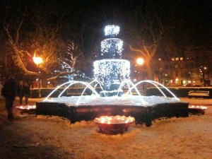 När de hade åkt hem så gick vi ner till julskyltningen.. Dock blev det bara en korv var typ. Mandlarna kostade 30 kr och det är de fan inte värda.. Men fontänen var fin.. 😛