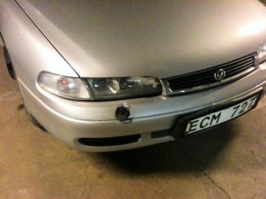 Sen har jag även lyckats vara med i en olycka med min kära bil. Det var en mindre stöt mot en dragkrok på framförvarande bil. Men det som här inte ser ut att vara så stor skada är en dyr historia. Vi får se hur denna historia slutar.