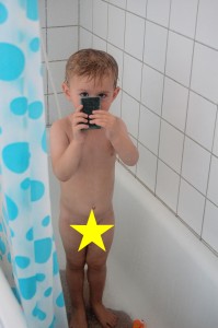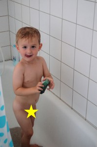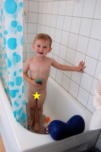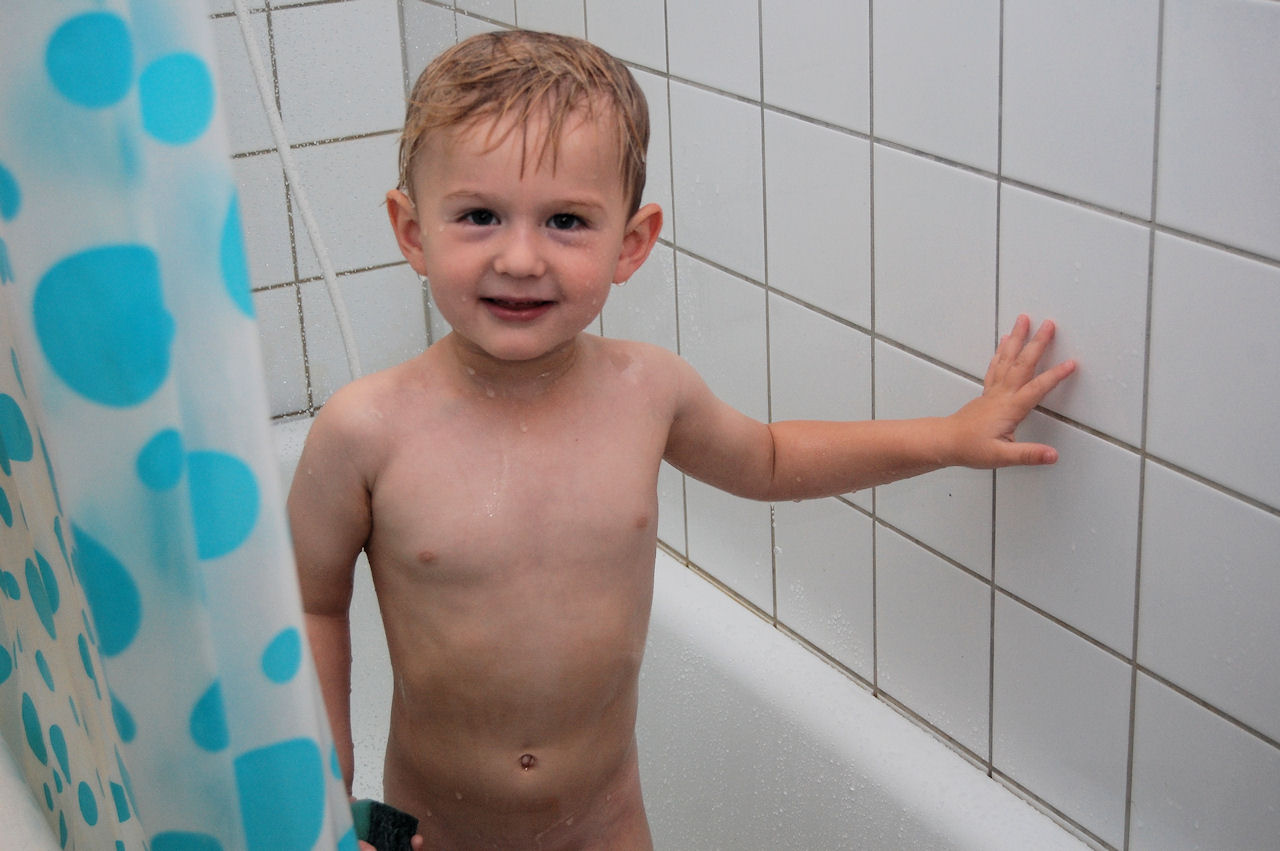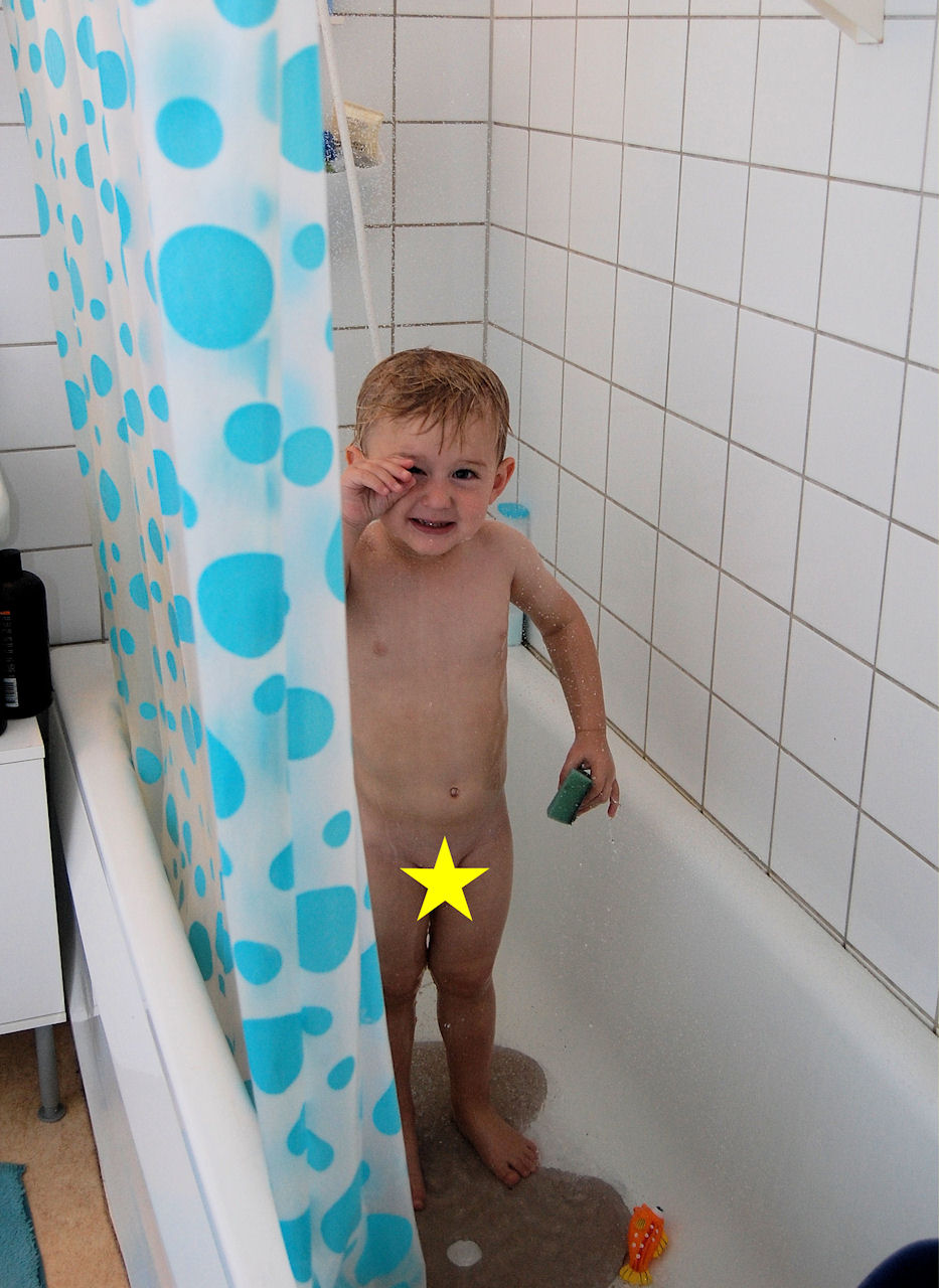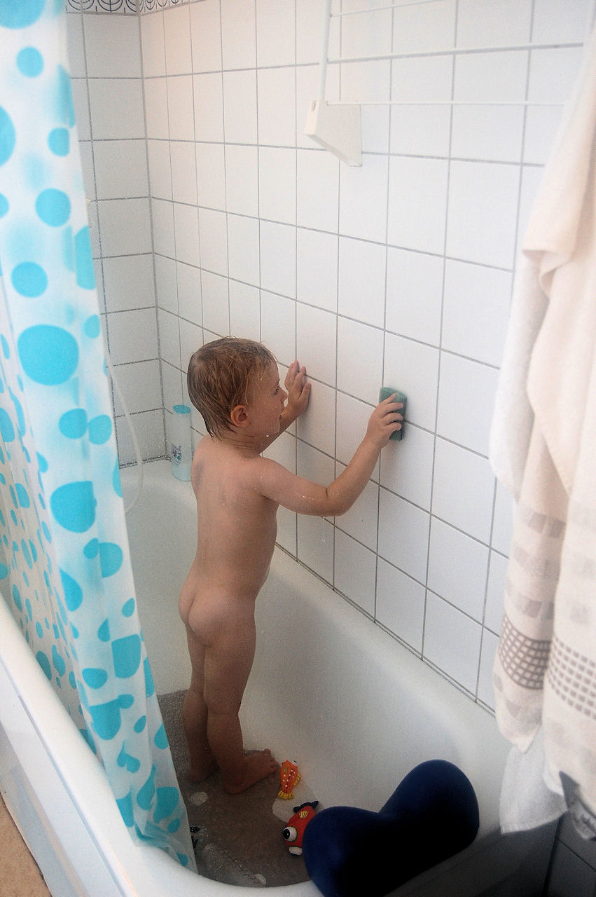 Felix har t ex tvättat väggen vid badkaret. Ja något får han ju göra om han ska få bada.. Hihi